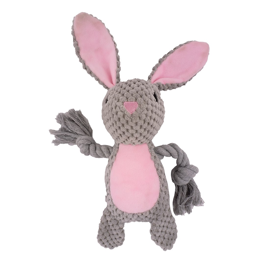 Plyšová hračka pro psy - králíček Cuttie s pískátkem a provázkem Have a Pet